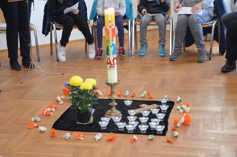 Seit vielen Jahren gestaltet das Kinderliturgieteam parallel zur Festmesse eine Kinderandacht. Nach dem beeindruckenden Einzug der Pferde und den Begrüßungen gingen die Kinder in den Chorraum zur Kinderfeier.