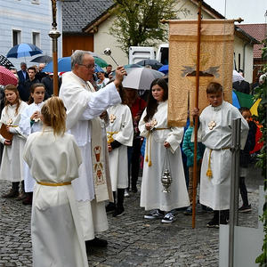 Am 7. Okt. wurde auch das Patrozinium - Rosenkranzkönigin - und 70 Jahre Grundsteinlegung unserer Kirche gefeiert. Aus diesem Anlaß wurde die Marienstatue mit einem neuen Strahlenkranz gesegnet.