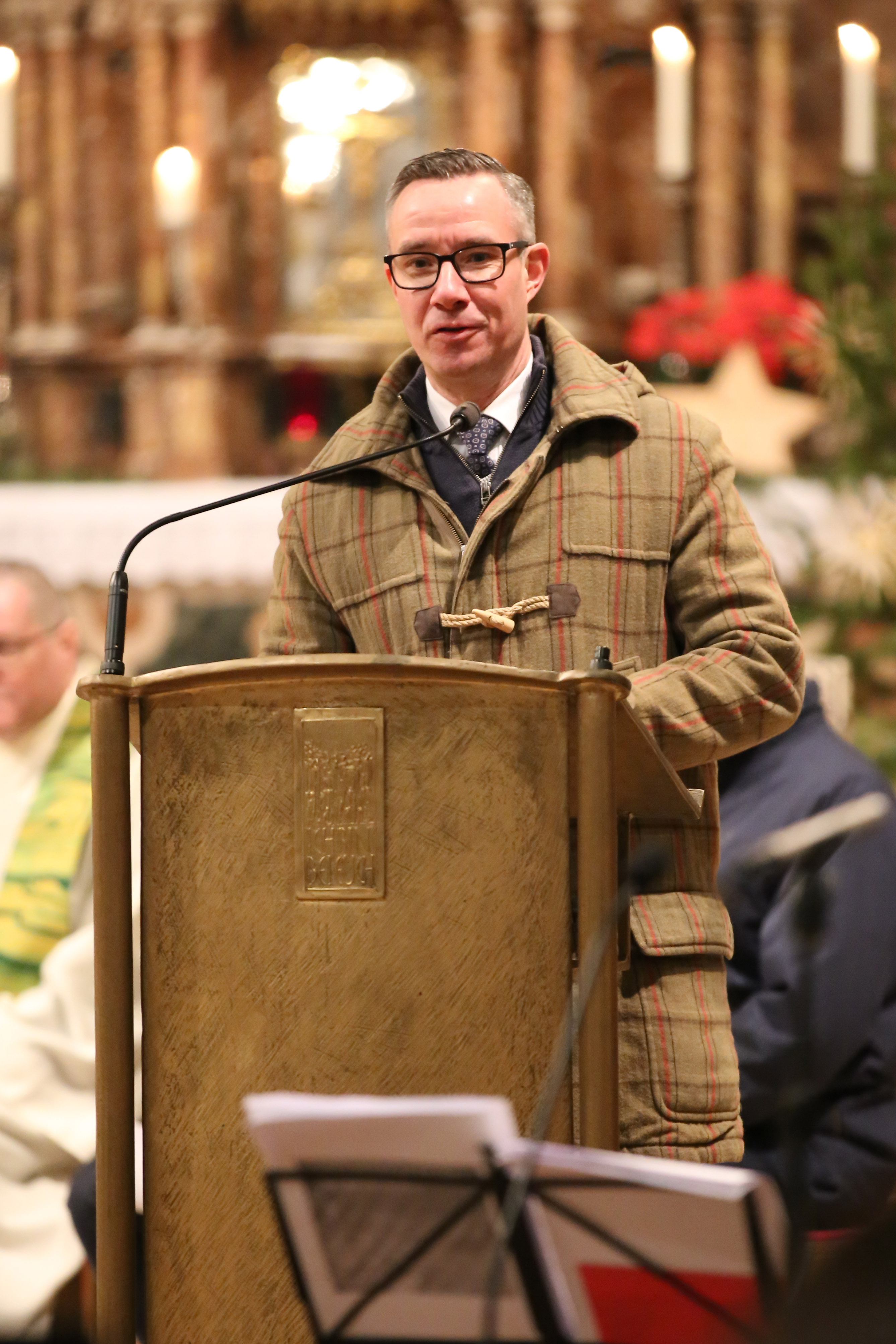 Foto 5: Der evangelische Pfarrer Tom Stark bei seinen Grußworten.